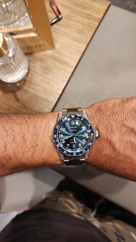 Στη συνέχεια δοκίμασα το πρόσφατο Zulu GMT σε μπλε, το πράσινο δυστυχώς δεν υπήρχε διαθέσιμο...Από κοντά, φορώντας το, δεν δείχνει
