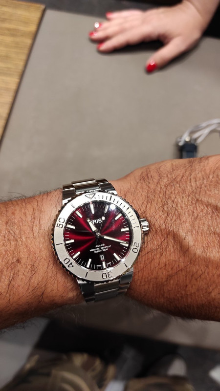 Πίστευα ότι θα φαινόταν μικρό αλλά ακόμα κι έτσι ειχε δυνατή παρουσία στον καρπό..Η απόχρωση του burgundy σε συνδυασμό με την radial σχεδίαση του προσφέρουν μαγευτικο οπτικό θέαμα..Αναρωτιέμαι στα 43,5mm πως θα φαινόταν!! Αυτό αρχική έπαιζε στα 2100..