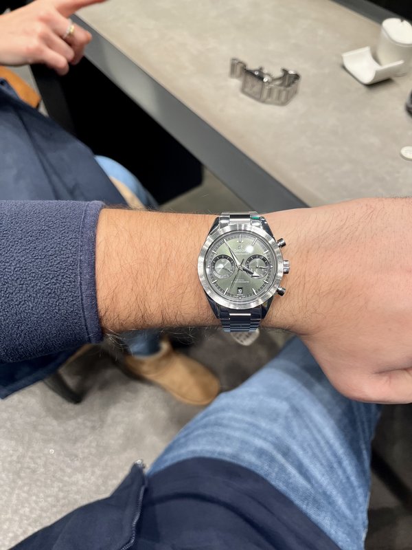 To πρασινάκι και οι λεπτομέρειες του dial χάρμα οφθαλμών, μικρότερη διάμετρος(40,5mm)από το Μοonwatch,αλλά έχω την εντύπωση πως 'φοριέται μεγαλύτερο'(lug to lug κοντά 50mm).Aνετο μπρασελέ με 'comfort release adjustment system'.
