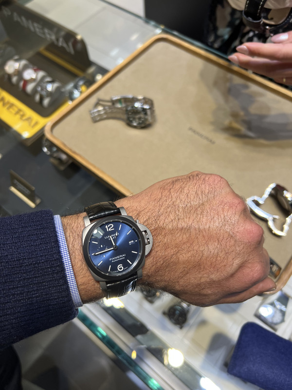 Panerai στα 42mm ... το έχω πει πολλές φορές, το μέγεθος των Panerai είναι πρόβλημα εκτός κι αν είσαι purist Paneristi, δίμετρο γυμνασμένο παλικάρι ή έχεις καρπό κουπί. Τα "μικρά" Panerai έχουν πολύ ενδιαφέρον, με όλα τα ιδιαίτερα σχεδιαστικά χαρακτηριστικά της εταιρείας, εκτός του μεγέθους, να φωνάζουν παρών και ταυτόχρονα μπορούν να φορεθούν στους περισσότερους καρπούς. Το συγκεκριμένο πανέρι της φωτό δεν είναι της δικής μου αισθητικής αλλά είναι όμορφο και πανάλαφρο ... και πανάκριβο, περίπου 10Κ νομίζω.