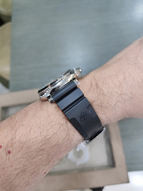 Το 45αρι Radiomir είναι πολύ οριακό για τα δικά μου γούστα. Ας μου φαίνεται ωραίο όταν το βλέπω σε καρπούς άλλων, ας μου λένε πως κάθεται ωραία στον καρπό μου … δυσκολεύομαι να το συνηθίσω πάνω μου. Στα δικά μου μάτια είναι μεγάλο και φοριέται σαν πολύ μεγαλύτερο από το 44αρι Luminor (Πανέρω). Μου φαίνεται απίθανη η περίπτωση να φορέσω ποτέ Radiomir στα 47mm χωρίς αυτό να σημαίνει κάτι για τους υπόλοιπους … στο χέρι του @gerogian είναι υπέροχο!