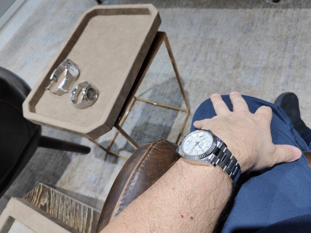 Της απάντησα πως με ενδιαφέρει, αν και θα δω ένα Sky-Dweller του '21 αύριο, stainless με white dial.