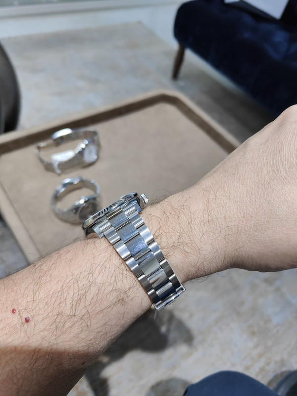 Την ίδια στιγμή δίπλα μου καθισμένος κι αυτός στο άλλο desk ήταν ένας Ινδός, νεαρός με την κοπέλλα ή γυναίκα του, που ατάκα κι επί τόπου παραλάμβανε καταχαρούμενος ένα Submariner white gold με το blue bezel - τρισήμιση χρόνια αναμονή (είχε, λέει, μπει σε λίστα πρώτα για Sub GMT αλλά το 2020 με τα novelties άλλαξε γνώμη...)