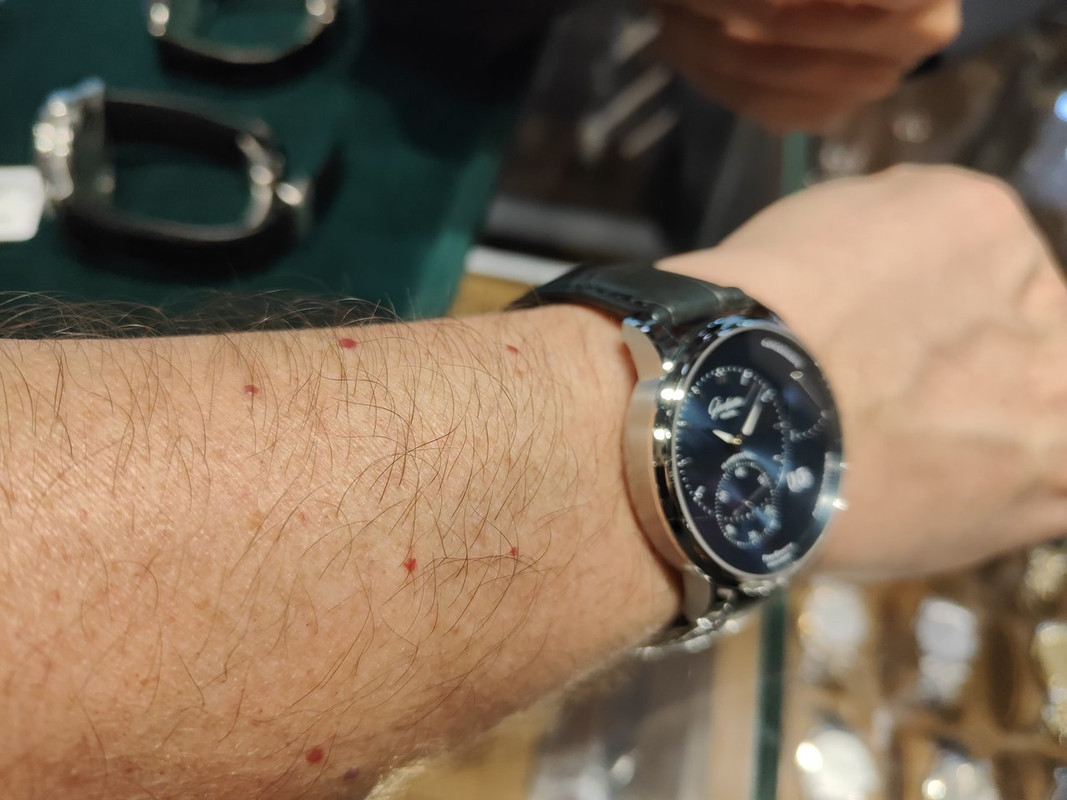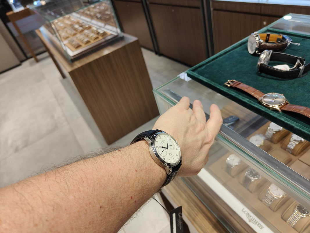 Πήγα εχθές να δω τα Glashütte κι έτυχε να φοράω το Moser, το οποίο βέβαια είχα αποκτήσει λίγες μέρες πριν.