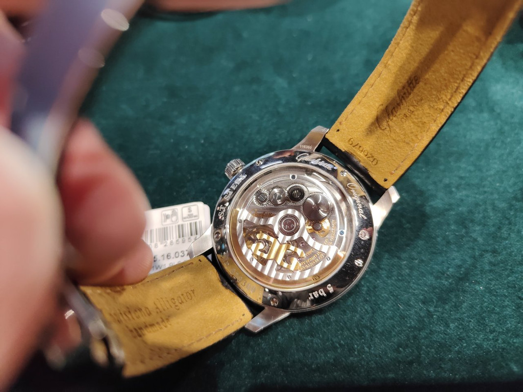 Προφανώς νομίζοντας ότι είμαι ζεστός για το οτιδήποτε, και βλέποντας ότι δεν πήρα κανένα από τα Glashütte εχθές, τσακίστηκε μέσα σ'ένα πρωϊνό να το φέρει στη boutique Outlet, υποθέτοντας ότι με πίεση θα τον πείσουμε. Τι να πεις τώρα.
