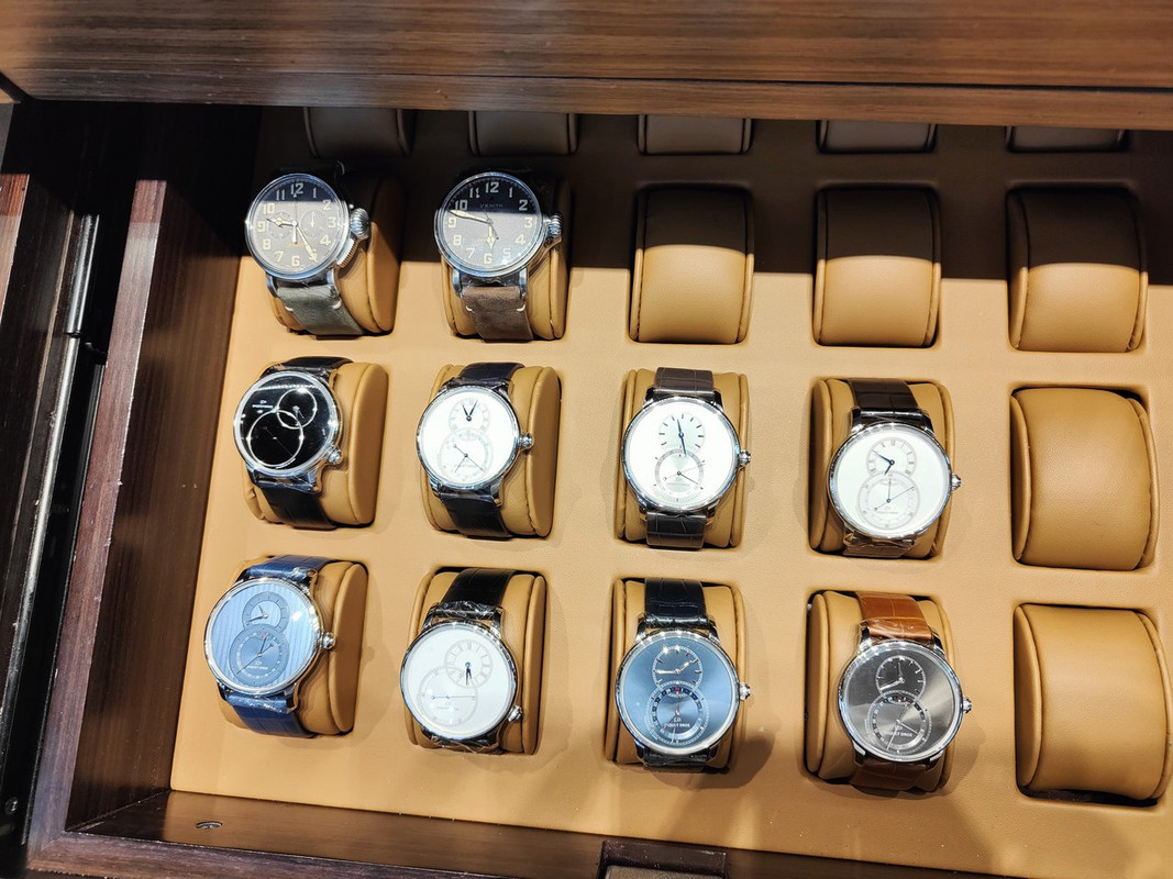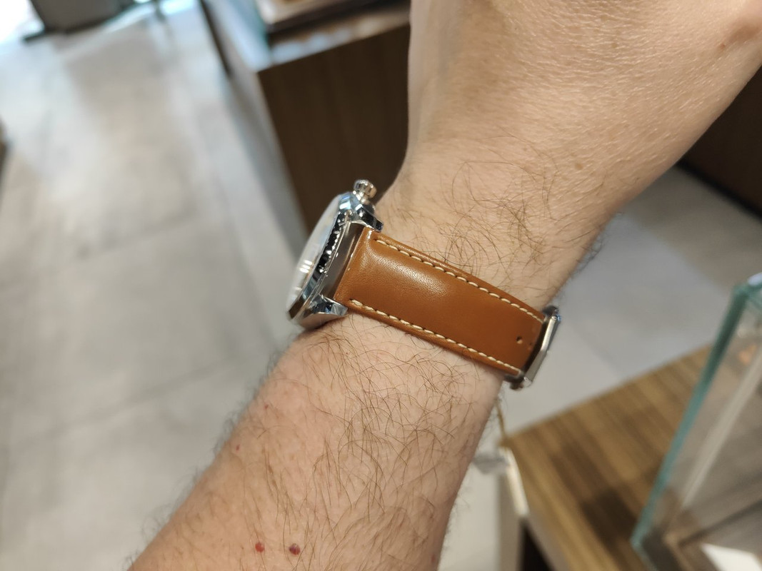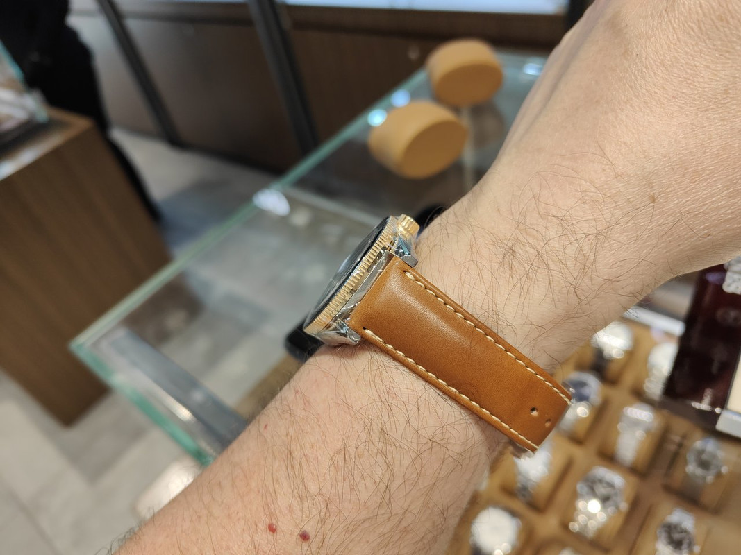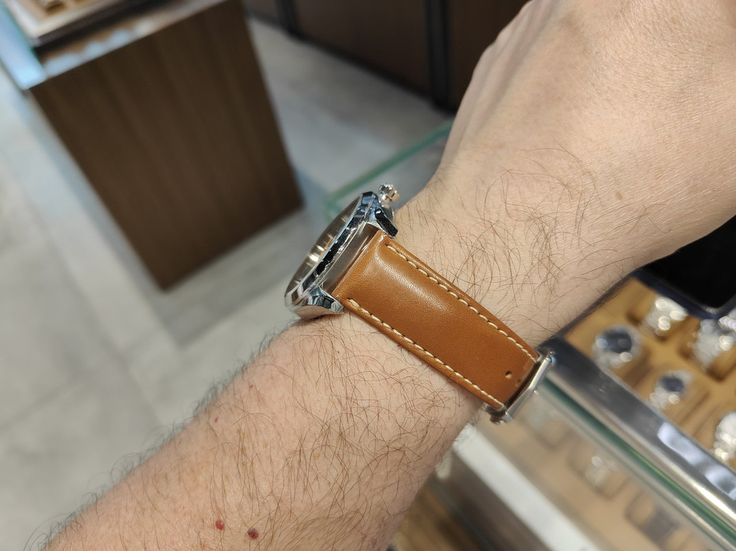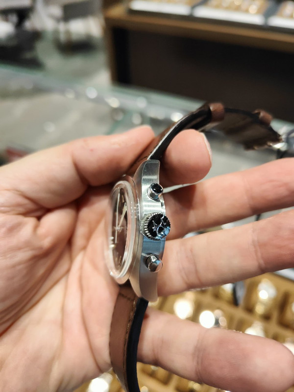 Αυτό με την '70s κάσα στα €1,000 μετά την έκπτωση - κλασική Valjoux 7750 και όχι πολύ παχιά κάσα.