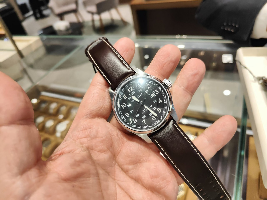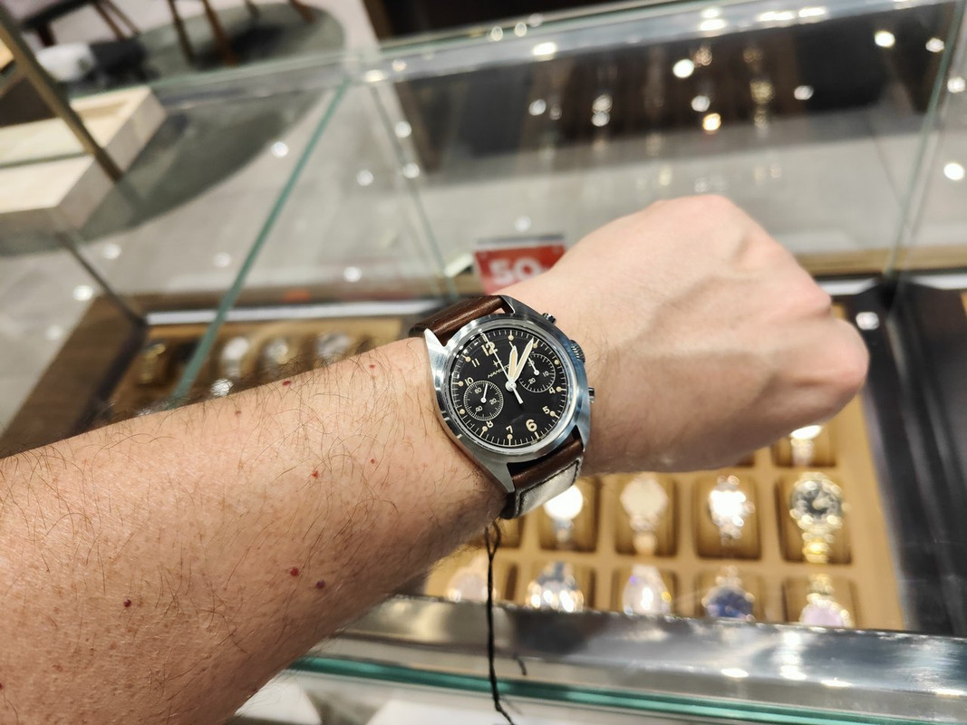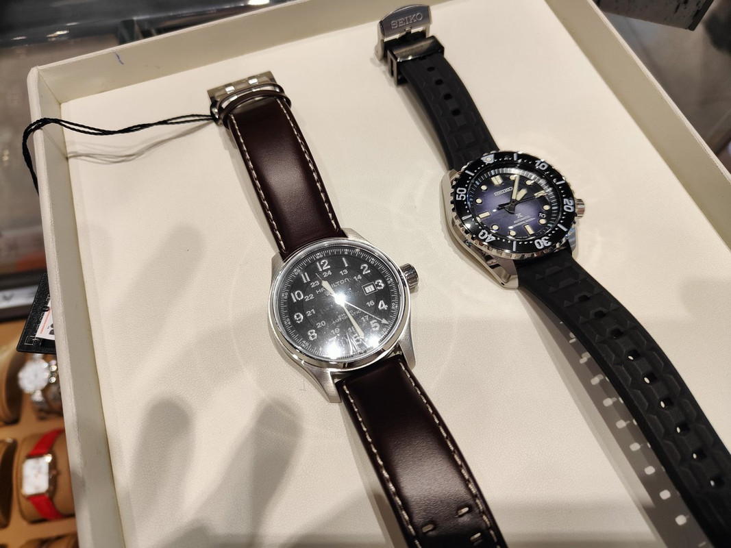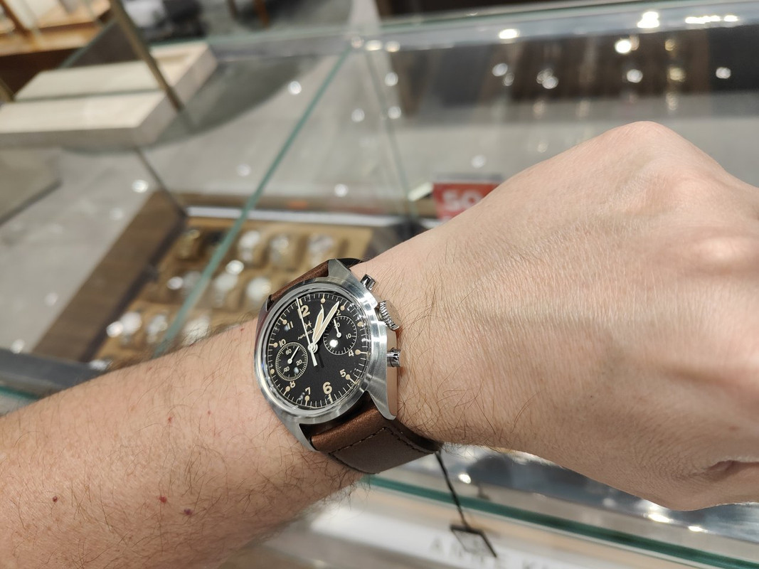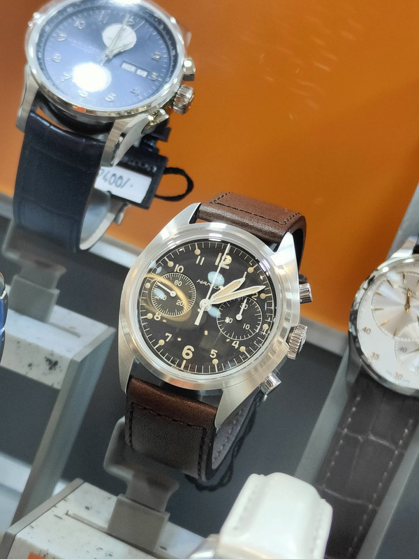 Είδα στα γρήγορα κι ένα Longines για το οποίο θα μιλήσουμε άλλη μέρα (σε ανύποπτη στιγμή όπως πάντα), προς το παρόν ας πάμε σε δύο όμορφα κομμάτια από Hamilton που δοκίμασα πριν αποχωρήσω: