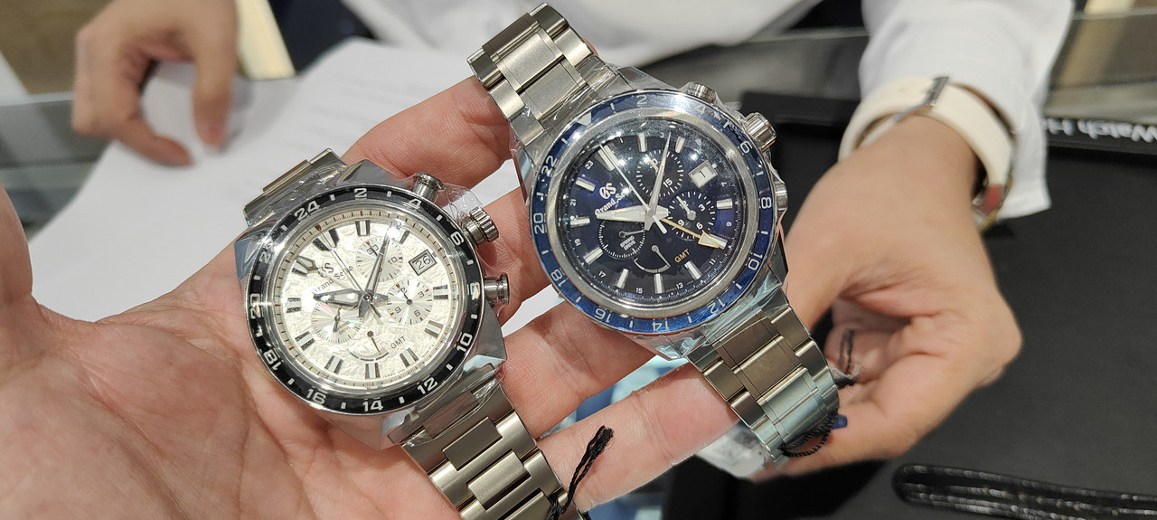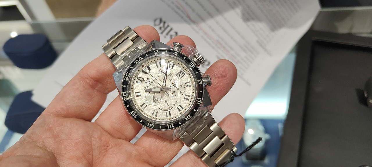 Το λευκό snowflake chrono με την τετραγωνισμένη κάσα είναι καινούργιο μοντέλο και μέσα στην προσφορά, €12,000 ενώ το άλλο (το μπλε chrono LE) δεν είναι στην προσφορά. Σχεδόν το μόνο, όπως κι άλλο ένα που παραδόξως δεν είναι στην προσφορά είναι το καφέ GMT με την κάσα 44GS το οποίο είναι LE...