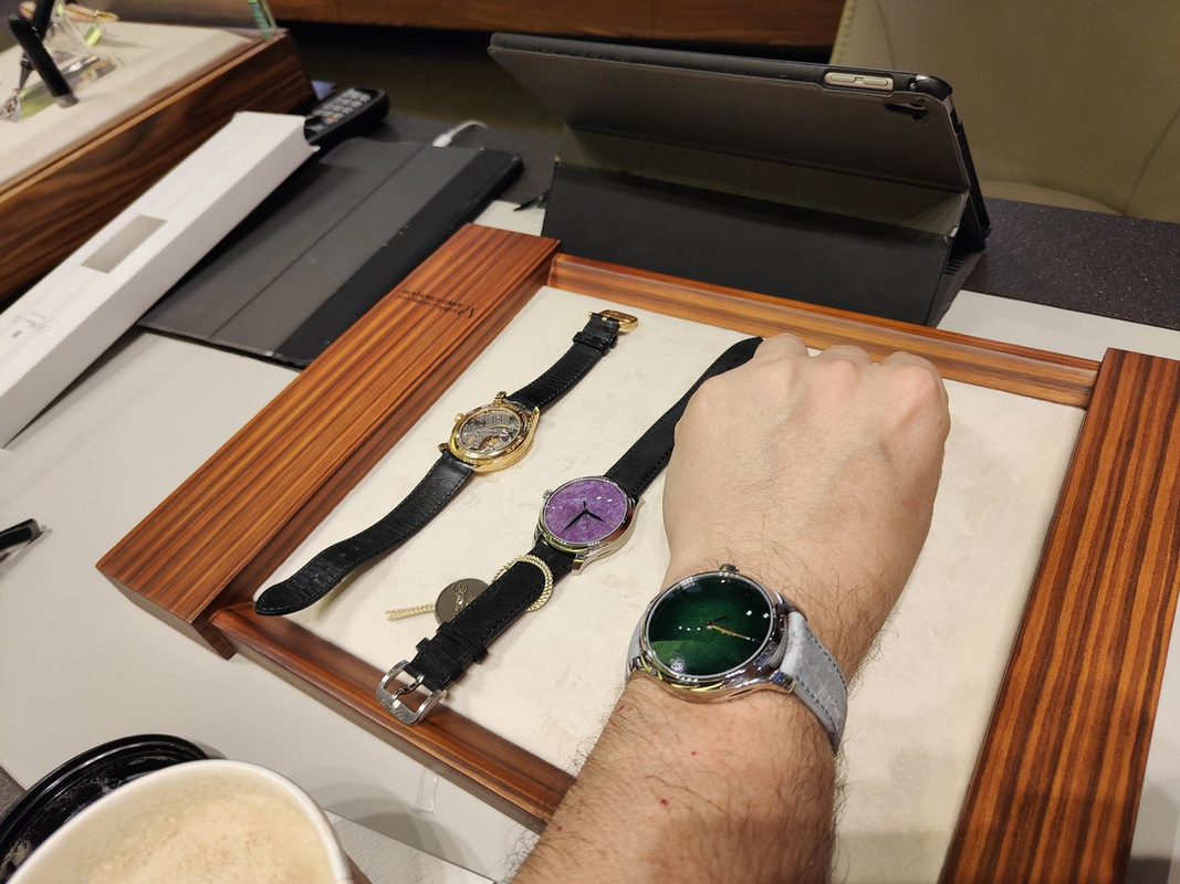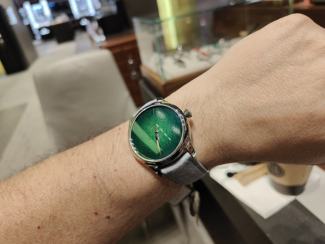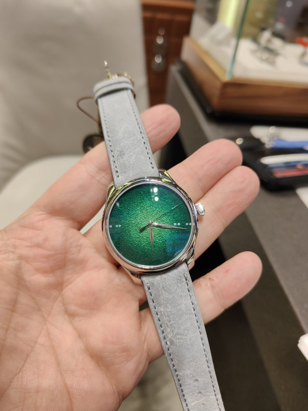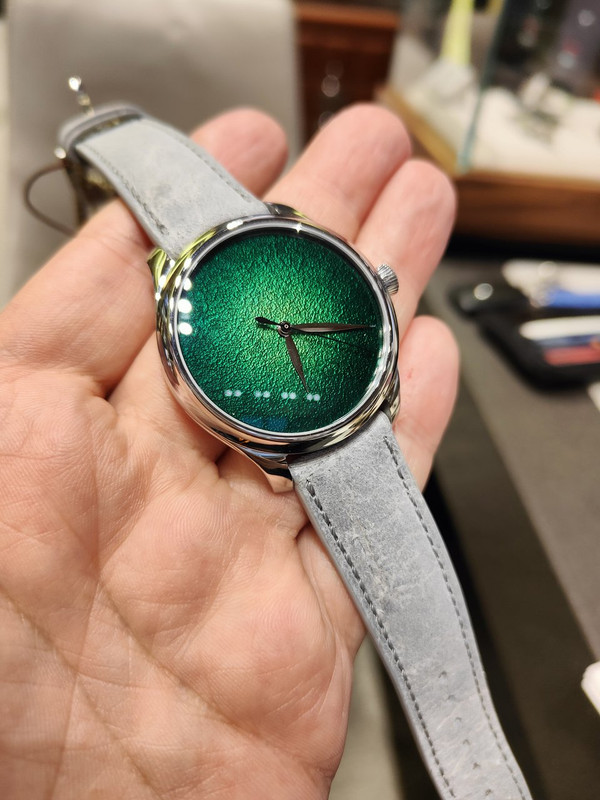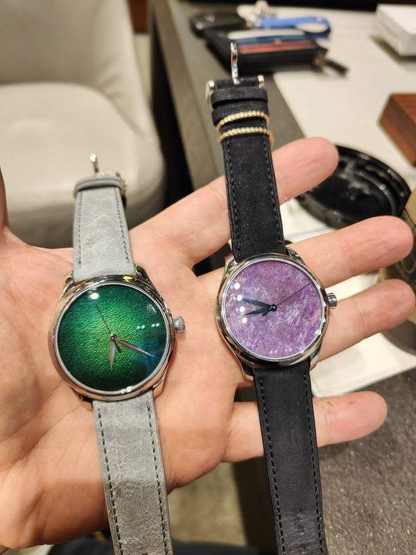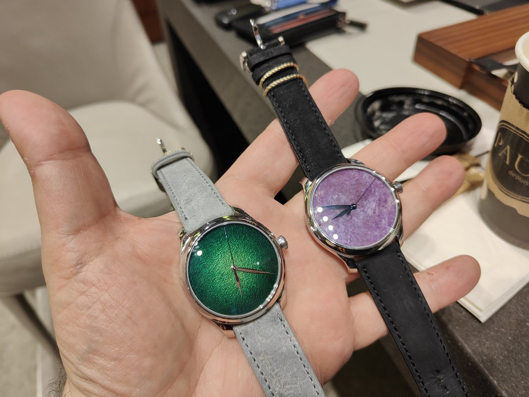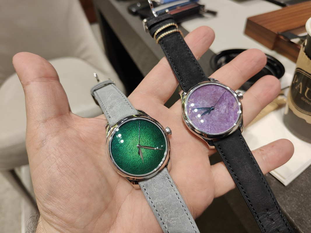 Endeavour Center Seconds ατσάλινα και τα δύο, το ένα με πράσινο enamel lime green dial, και το άλλο LE 20pcs με Ρώσικη πέτρα (παλαιότερα το είχα δοκιμάσει σε tourbillon, LE 3pcs...)