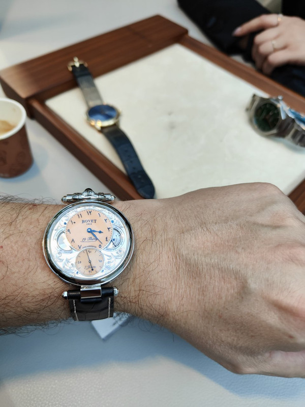 Μου βγάζει (πάλι από μέσα, από το safe) ένα ακόμη σπέσιαλ, τούτη 'δω τη φορά Bovet με salmon dial:
