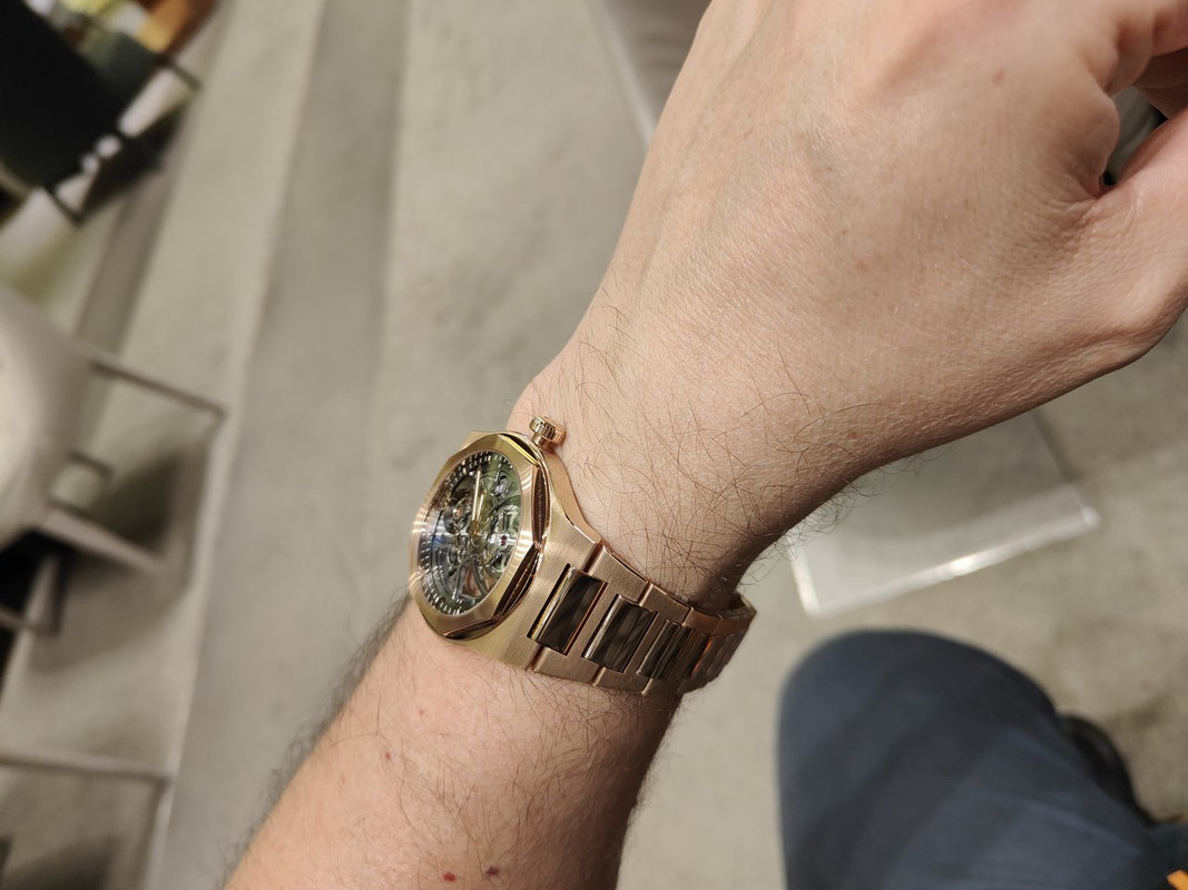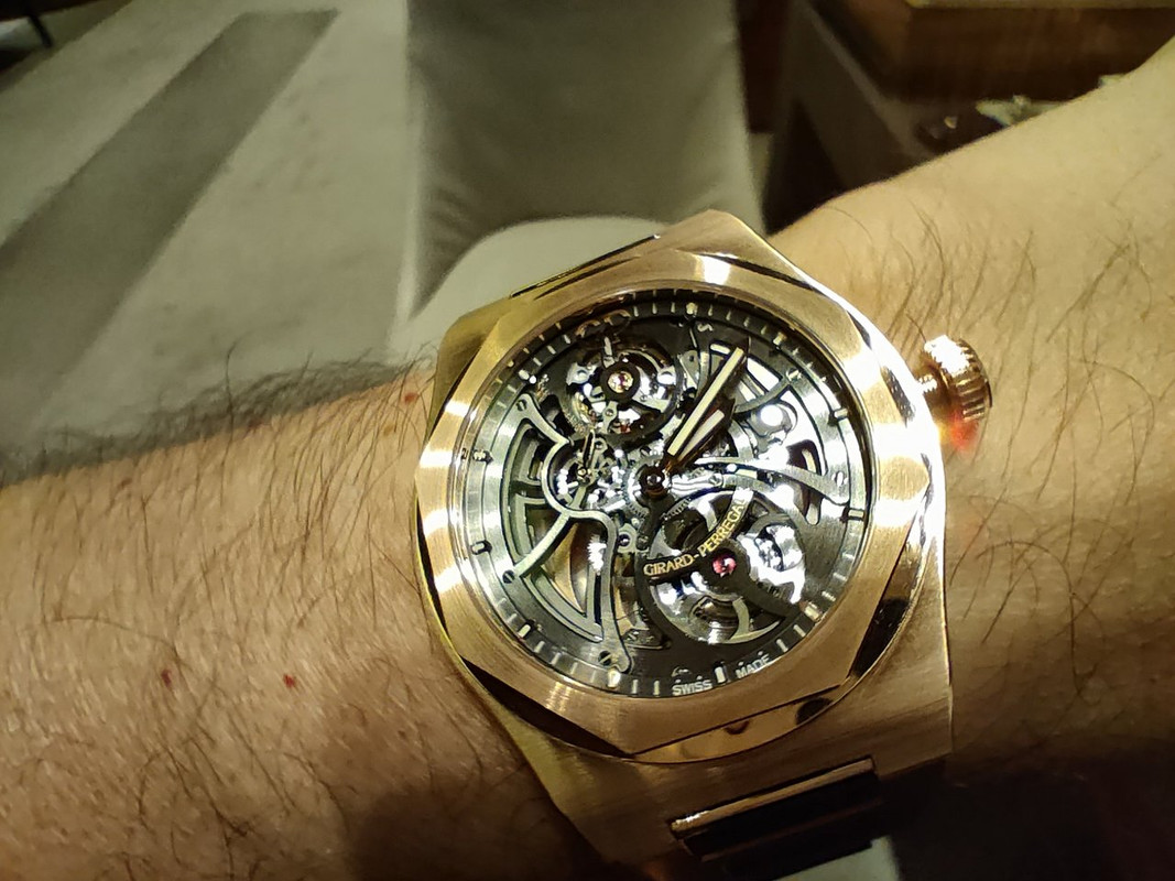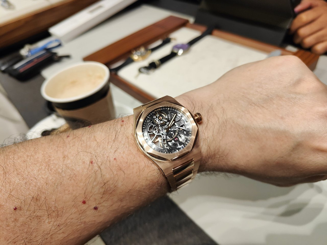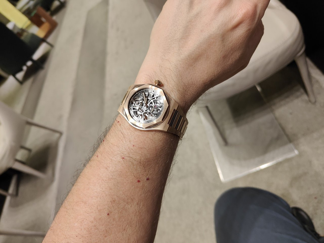 Με τούτα και με τ'άλλα, μου έφερε 4-5 κομμάτια να δω πάλι, συμπεριλαμβανόμενου του Laureato Skeleton RG (€63,800 μετά την έκπτωση) που δεν είχα δοκιμάσει...