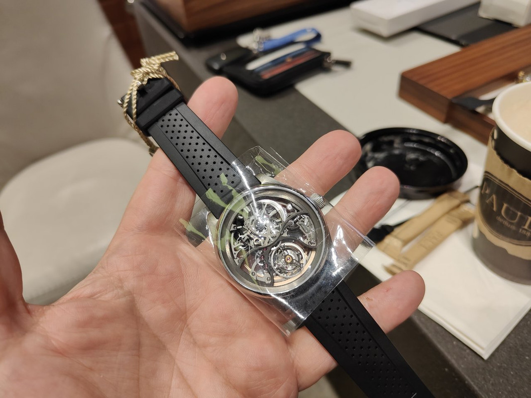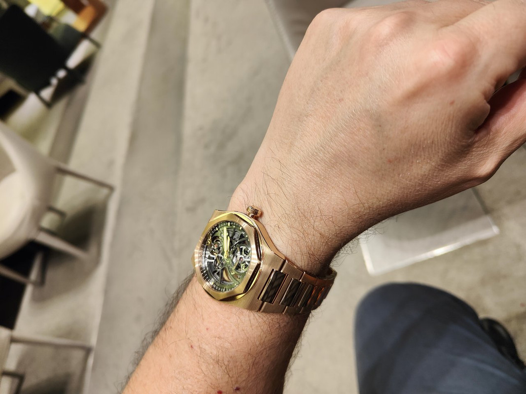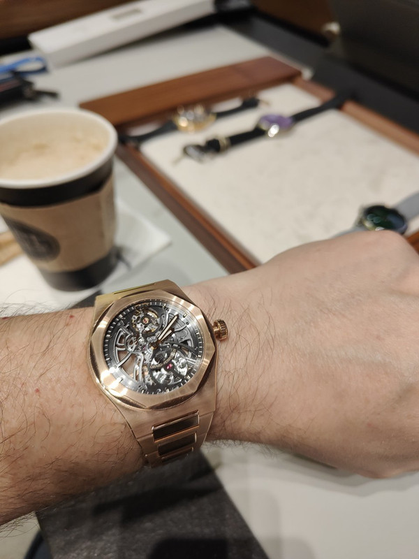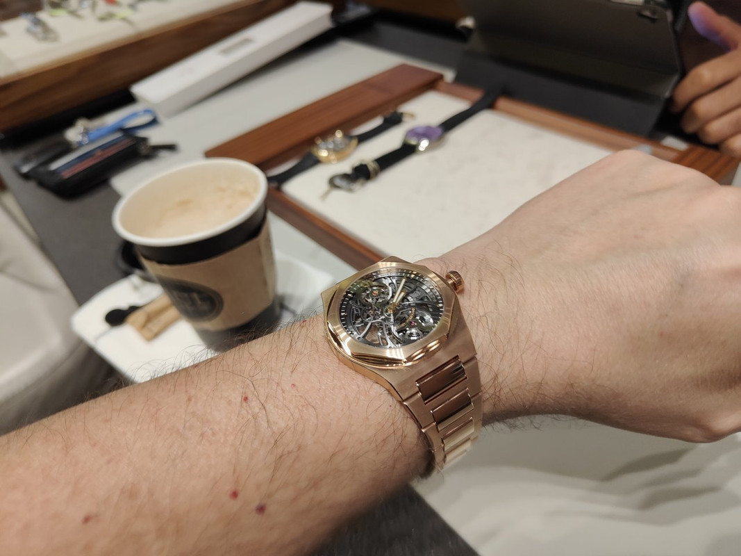 Με τούτα και με τ'άλλα, μου έφερε 4-5 κομμάτια να δω πάλι, συμπεριλαμβανόμενου του Laureato Skeleton RG (€63,800 μετά την έκπτωση) που δεν είχα δοκιμάσει...