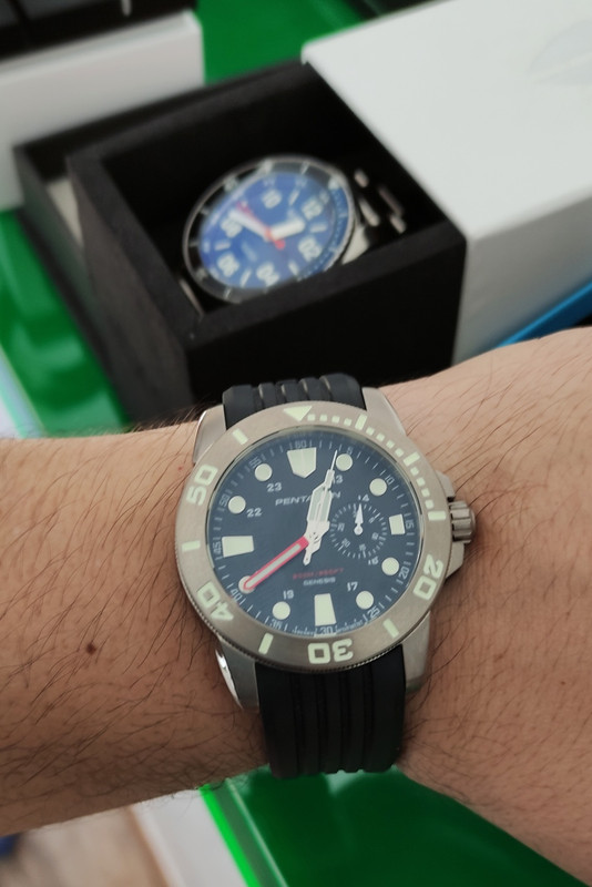 Τιτάνιο και ταχύπαλμη Ronda. Μου φάνηκε πως ήταν αυτόματο. Το subdial είναι ημερομηνία. Ενδιαφέρουσα παρουσία.