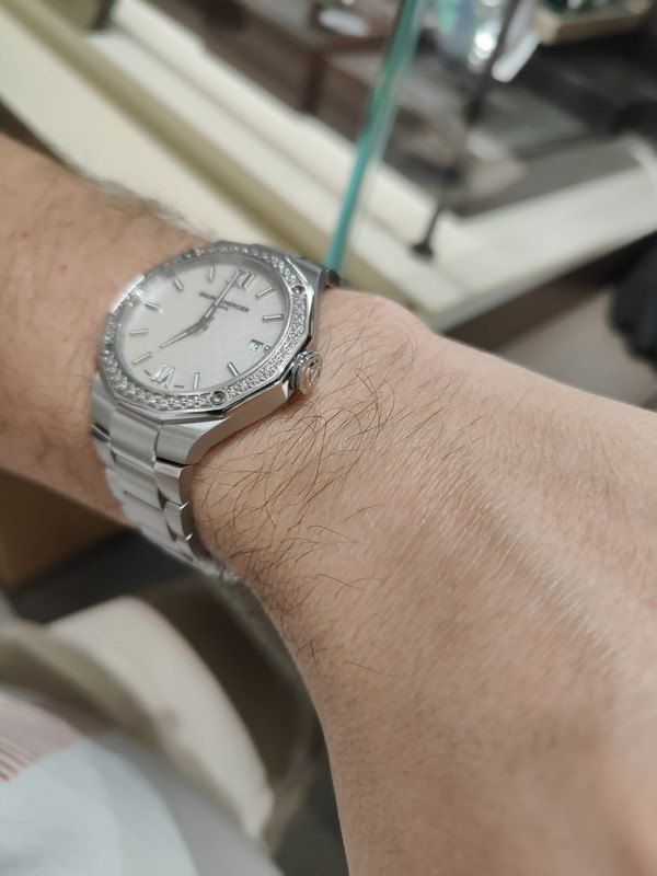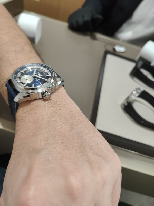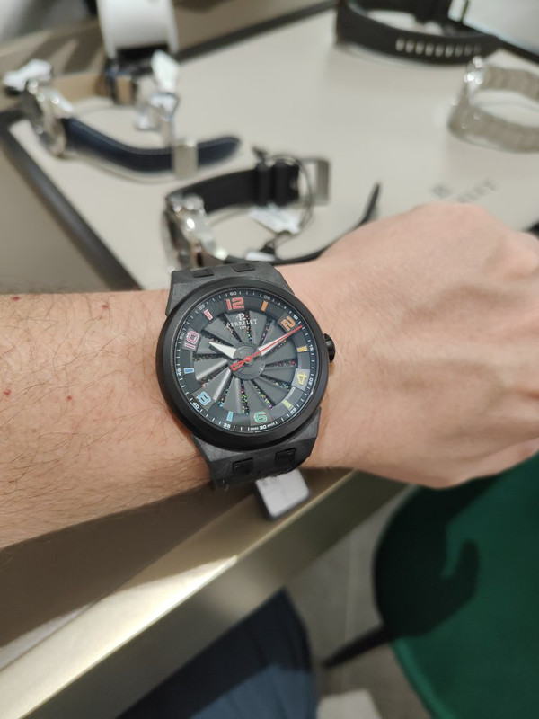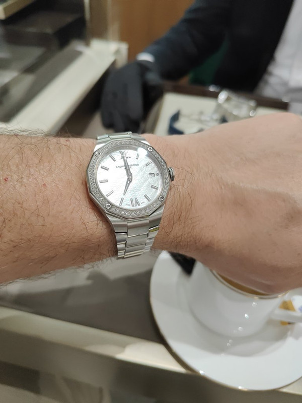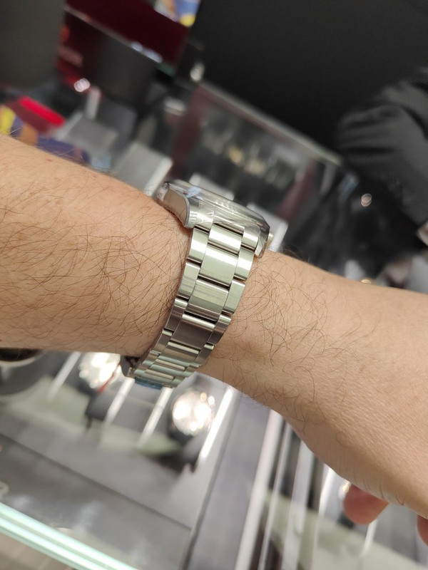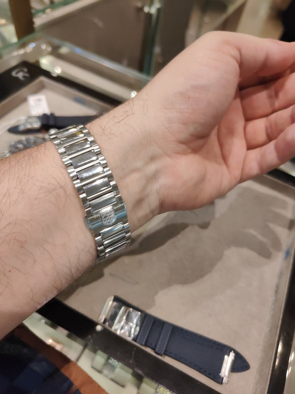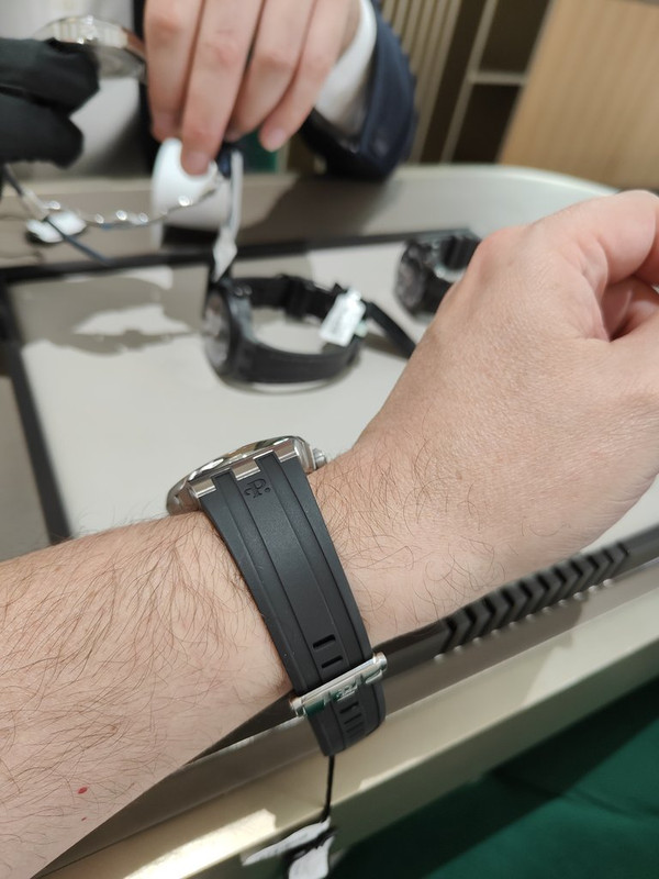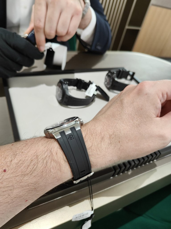 Έχει και χωρίς διαμάντια στη στεφάνη με πολύ ωραίο πράσινο ή γαλάζιο dial που παίρνουν και rubber strap με quick strap change mechanism. Tα δοκίμασα κι αυτά αλλά δεν έχω φωτό διότι όταν απεσύρθη ο Ινδός sales associate ήλθε η Ρουμάνα manager του καταστήματος και πιάσαμε την κουβέντα....