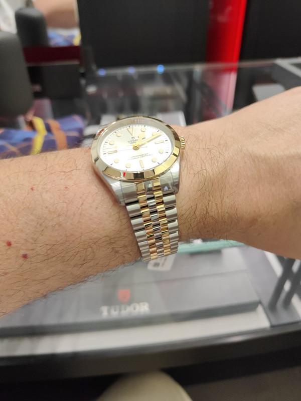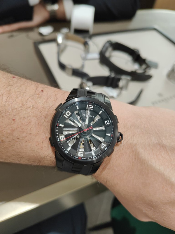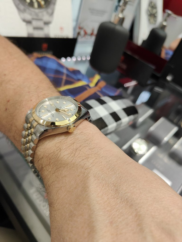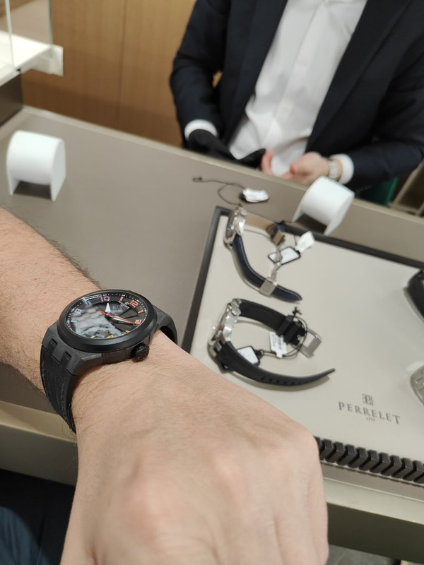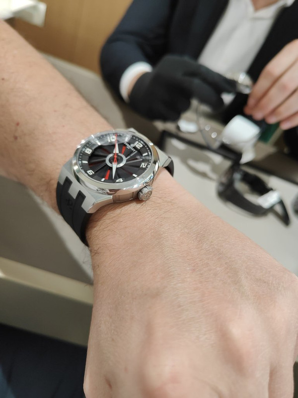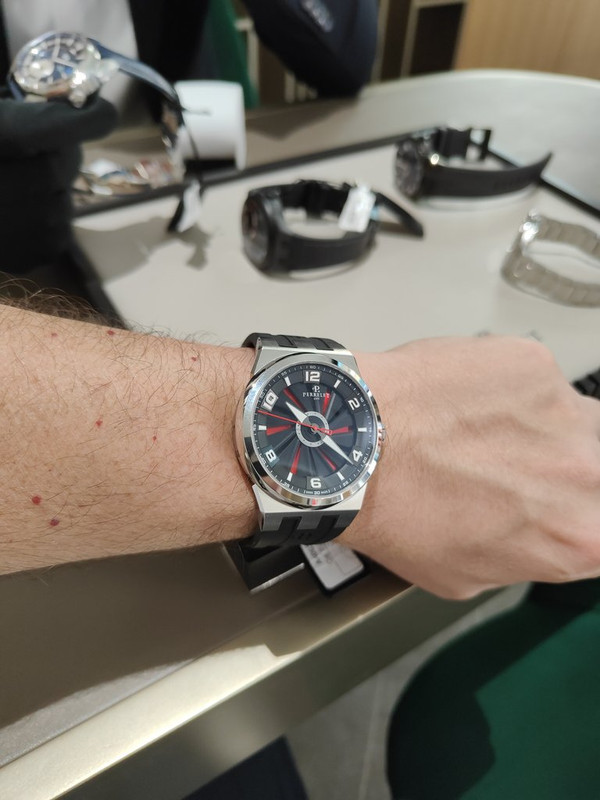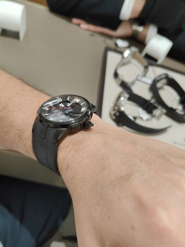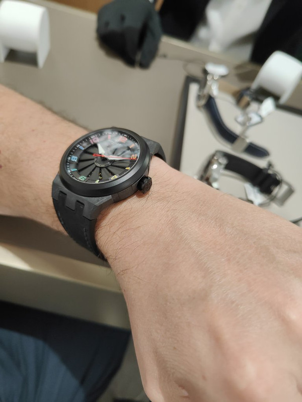 Έχει και χωρίς διαμάντια στη στεφάνη με πολύ ωραίο πράσινο ή γαλάζιο dial που παίρνουν και rubber strap με quick strap change mechanism. Tα δοκίμασα κι αυτά αλλά δεν έχω φωτό διότι όταν απεσύρθη ο Ινδός sales associate ήλθε η Ρουμάνα manager του καταστήματος και πιάσαμε την κουβέντα....