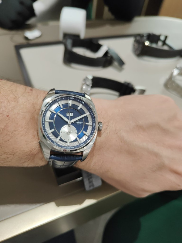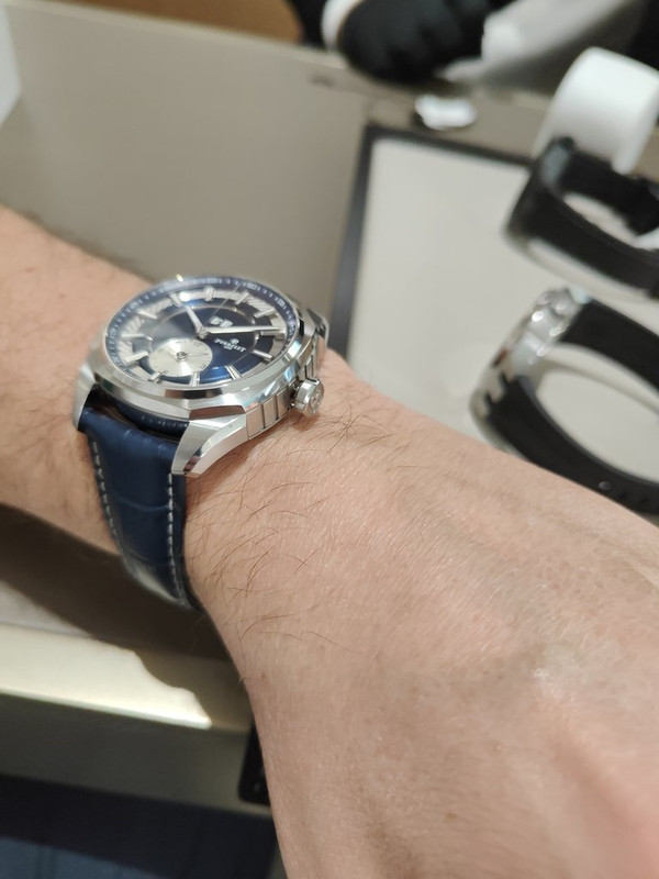 Sellita SW200, η κορώνα στο μπλε των 41mm είναι ελαφρώς μεγαλύτερη και το ρολόϊ κουρδίζεται πιό εύκολα