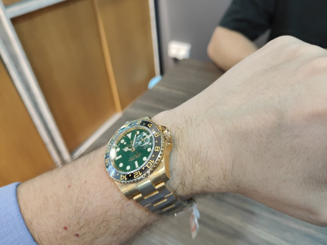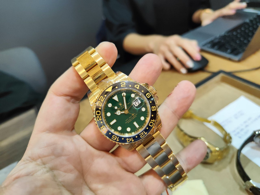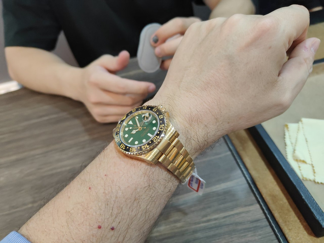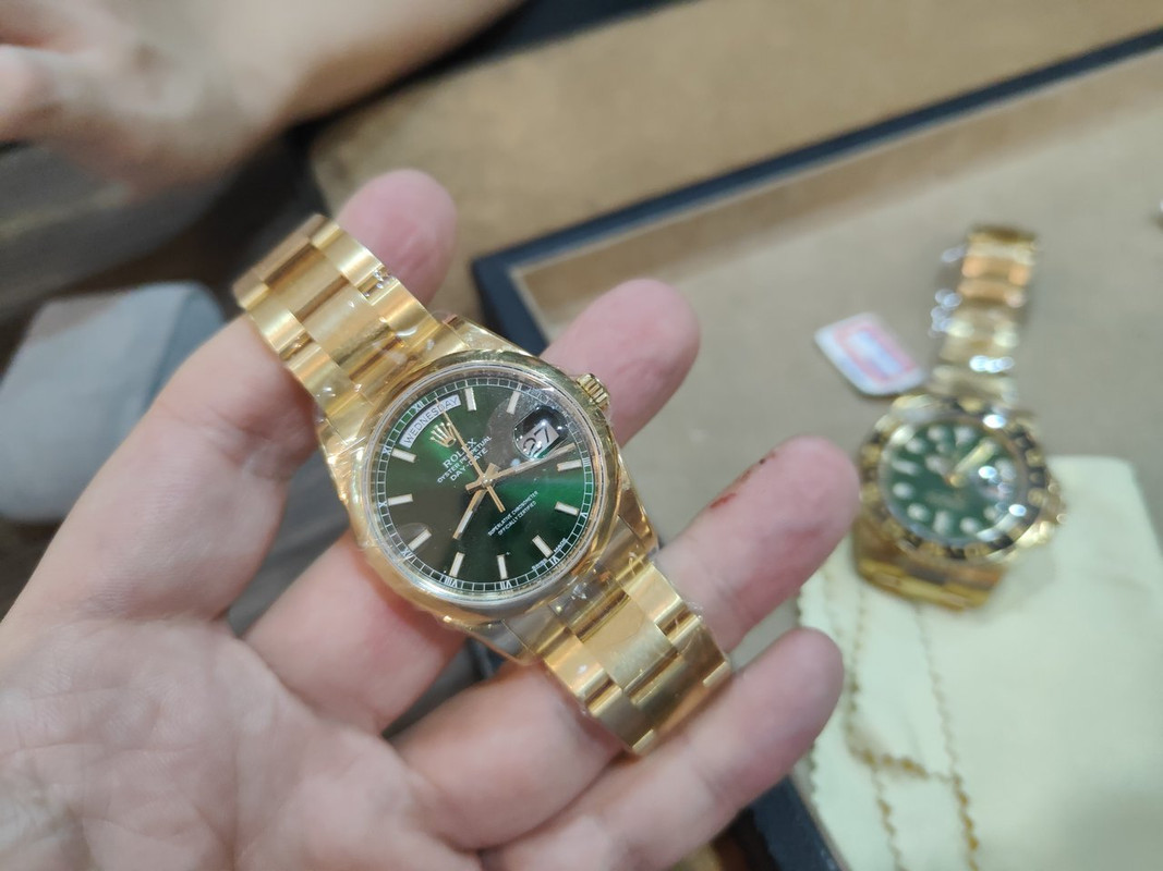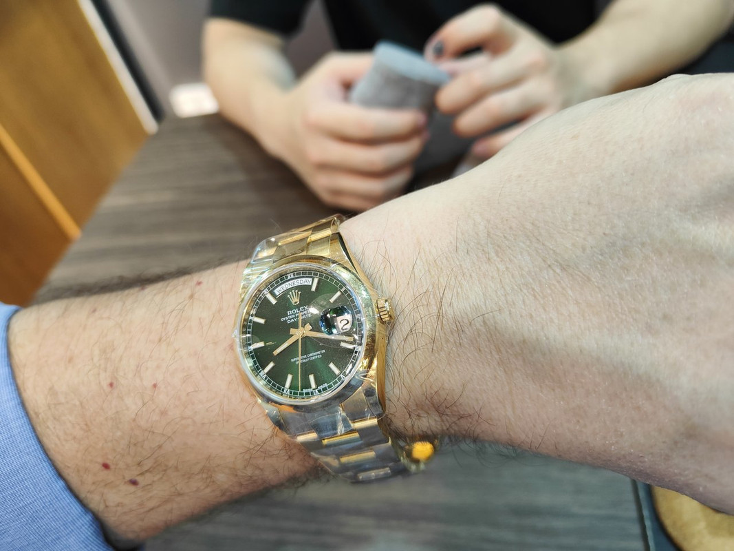 Για να εμπεδώσουμε το συνδυασμό κίτρινου χρυσού με πράσινο dial, πάμε να δούμε άλλες δύο φωτό από τα Rolex που είδαμε νωρίτερα