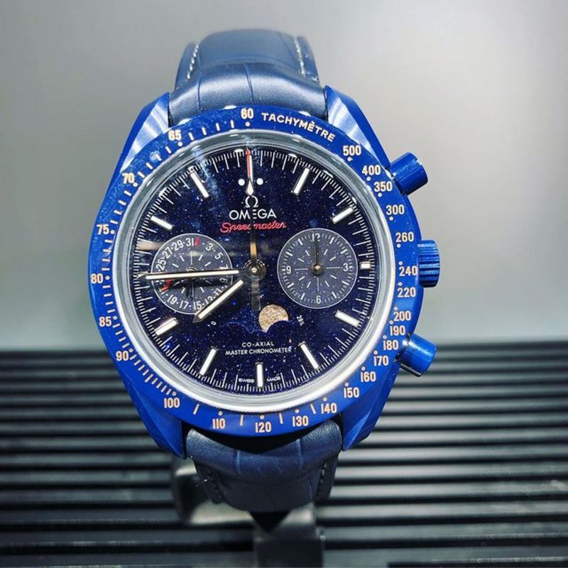 The Omega Speedmaster Blue Side of the Moon with aventurine glass dial shines bright like stars