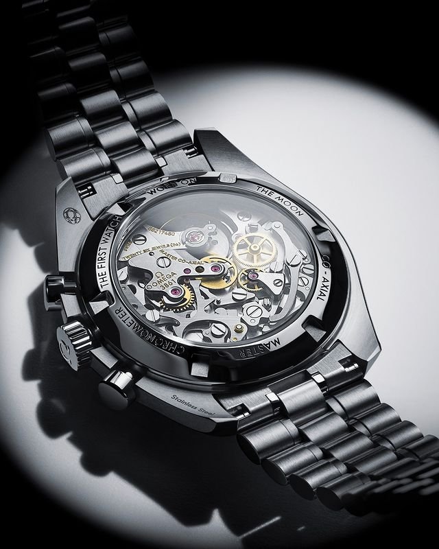 The new Speedmaster Moonwatch reveals a Co-Axial Master Chronometer Calibre 3861 through the sapphire crystal