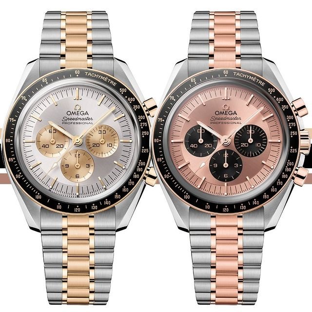 omega has introduced two new bi-color Speedmasters combining stainless steel with Omega’s proprietary Moonshine Gold or Sedna Gold