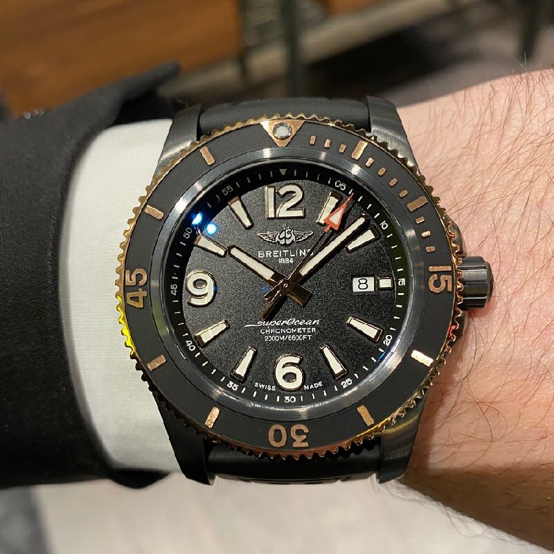 The Superocean 46 Blacksteel with Rose Gold boasts a water resistance of 2000 meters