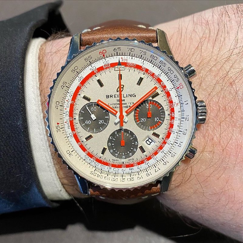 The Breitling Navitimer 01 TWA Airline Edition. Powered by the in-house manufacture 01 chronograph movement, the colors and vintage hands celebrate the golden age of commercial air travel. TWA, joined by Pan-Am and Swiss Air, all have special edition