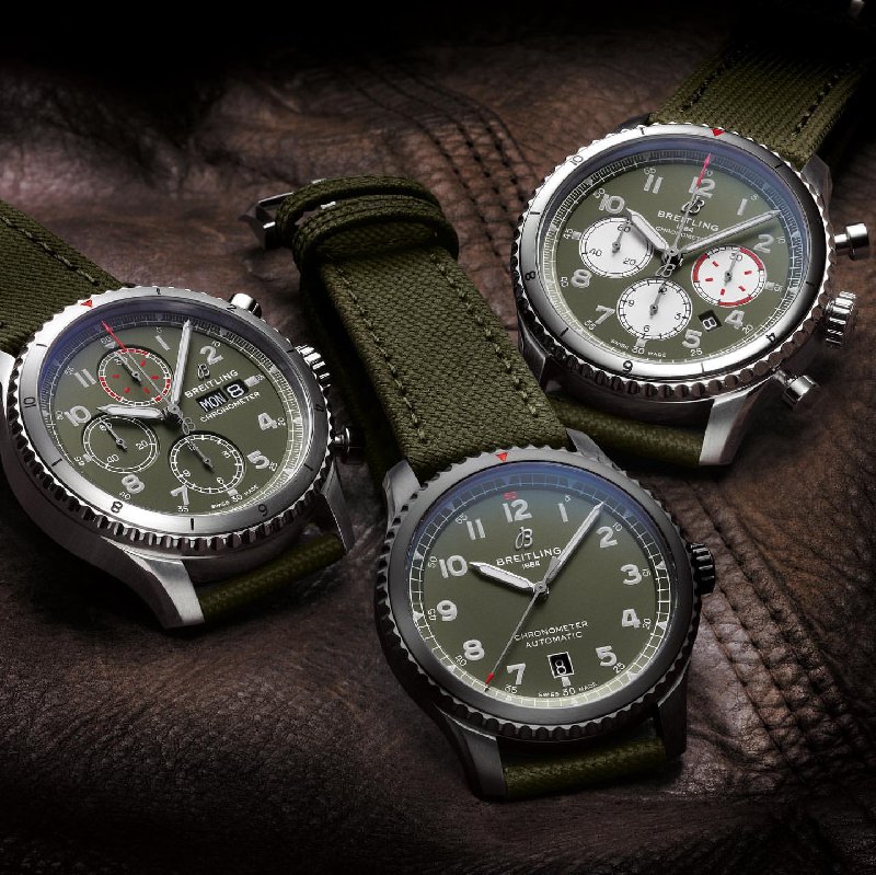 These three Breitling watches commemorate an aviation legend: The Curtiss P-40 Warhawk. They are contemporary interpretations of the design DNA and technical features of some of the first Breitling watches for pilots