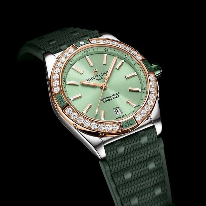 You can tell a Super Chronomat from the rest of the Chronomat family by its ceramic rider tabs and crown, and the rubber rouleaux bracelet only available with this supercharged line