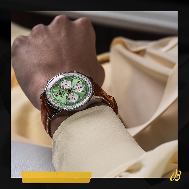Green is the new neutral. Go gaga for the mint-green dial on the Navitimer B01 Chronograph 41