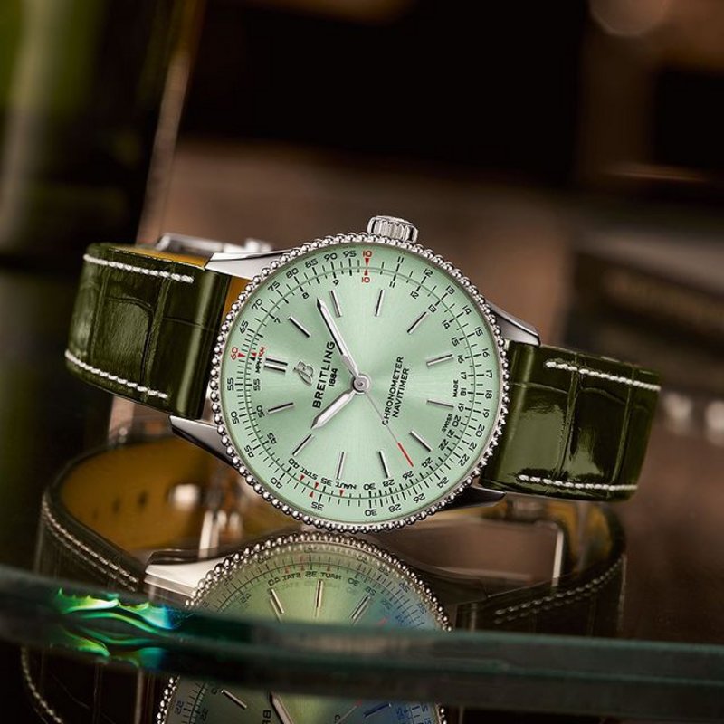 Timeless elegance in a fresh hue—the mint-green Navitimer 36