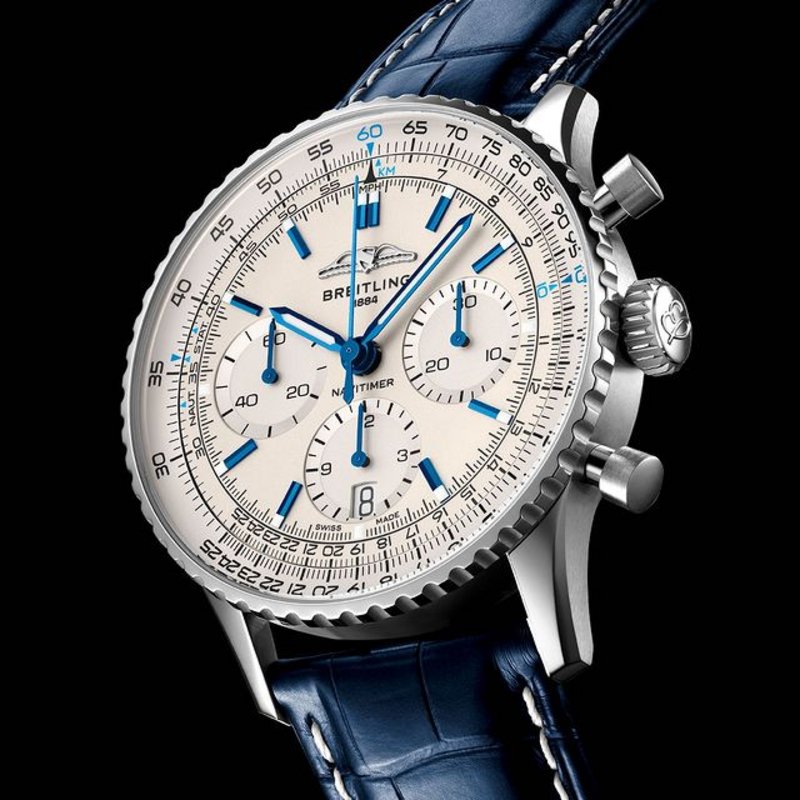 A chronograph. A calculator. A legend. Get to know the latest addition to our Navitimer collection—the Navitimer B01 Chronograph 41 with a striking silver and blue dial