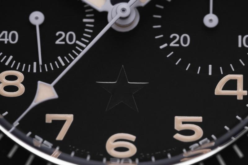 Featured at six o’clock on the dial is a very subtle black-on-black star in the exact place where the “3H” marking (designating the existence of tritium) appeared on the military watches. It is this small detail that gives the watch its sobriquet the Sinn × Revolution 155 Bundeswehr “Dark Star”