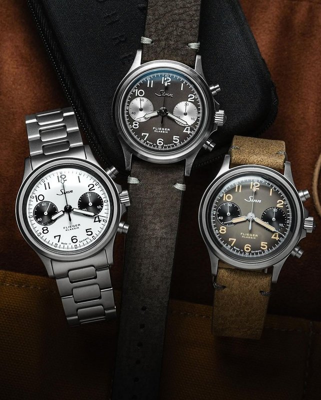 The new (left to right) Sinn 356 Classic W, Sinn 356 Classic Anniversary, and Sinn 356 Classic SA E dial back