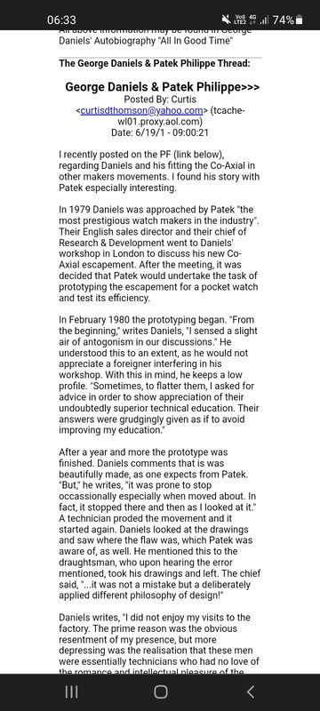 Η πρώτη επαφή του Daniels,για να πουλήσει το coaxial,ήταν με την Patek