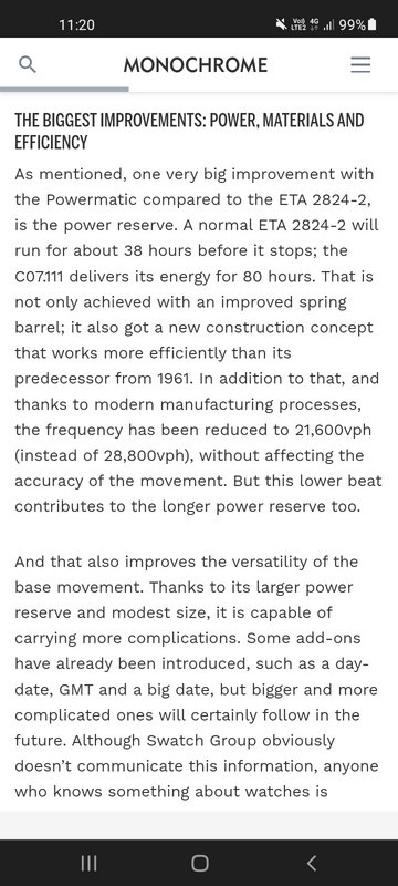 For instance, certain Powermatic 80 calibers, such as the Powermatic 80.111, contain plastic parts. Others, such as the COSC Powermatic 80.811, have no plastic components