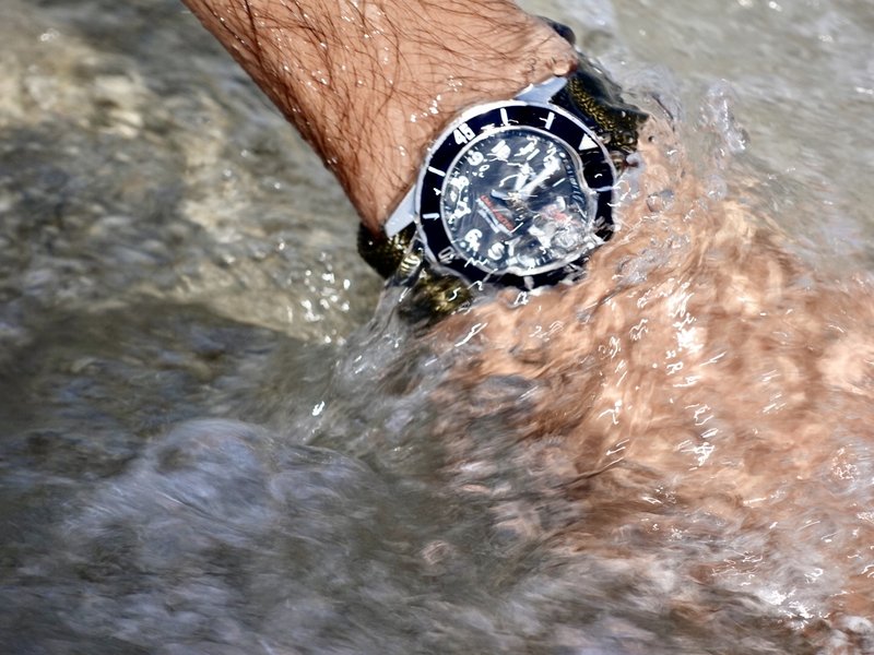 Ελαφρύ, μεγάλη αναγνωσιμότητα, εύκολη στεφάνη με βρεγμένο χέρι μέσα στο νερό, καλή εφαρμογή με την βάφλα, θα έλεγα, μετά από δεκαετίες ρολογιών στοο νερό, ότι είναι ΙΔΑΝΙΚΟ !