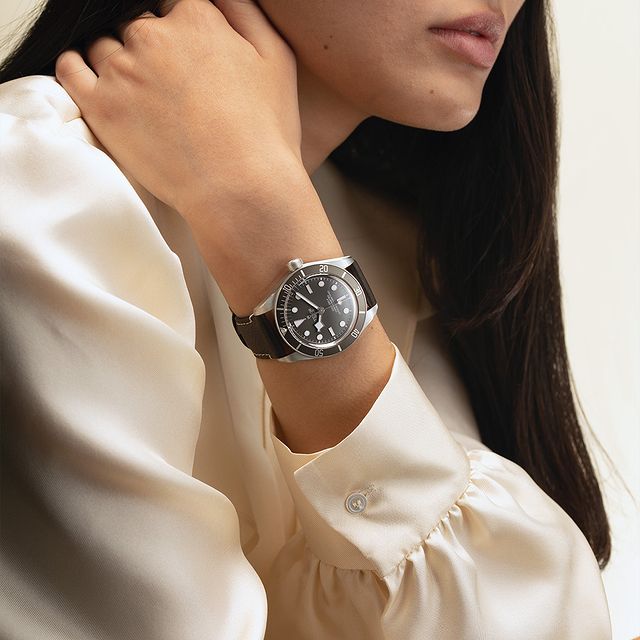 TudorBlackBay Fifty-Eight 925 is designed to fit every wrist. Robust and refined, this eye-catching timepiece boasts a matching bezel and dial accentuated with the characteristic TUDOR snowflake hands