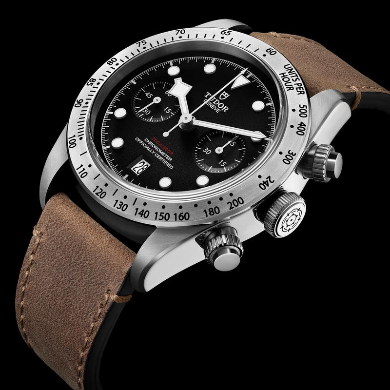 bidirectional winding, a column-wheel controlled chronograph mechanism with a vertical clutch, a 70-hour power reserve in a single mainspring barrel, a non-magnetic silicon balance spring, a speedy 28,800-vph frequency, and a COSC chronometer certification