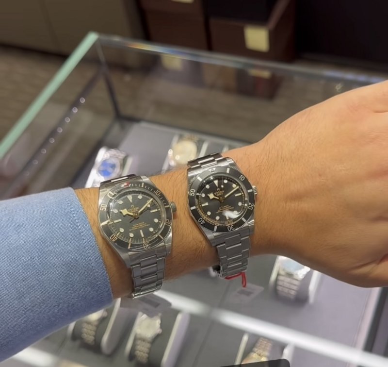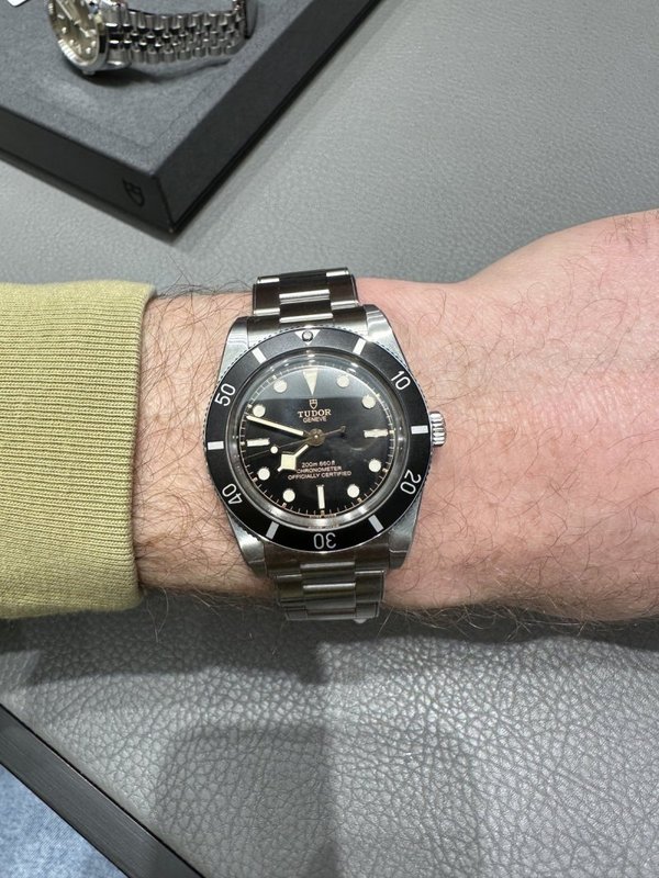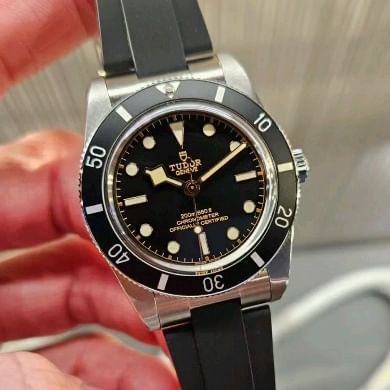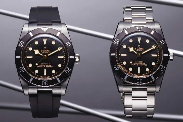Black Bay 54. Its 37mm case takes us back to Tudor's first ever dive watch, introduced in 1954. The bezel lacks a minute graduation, ramping up the sleek retro look even more