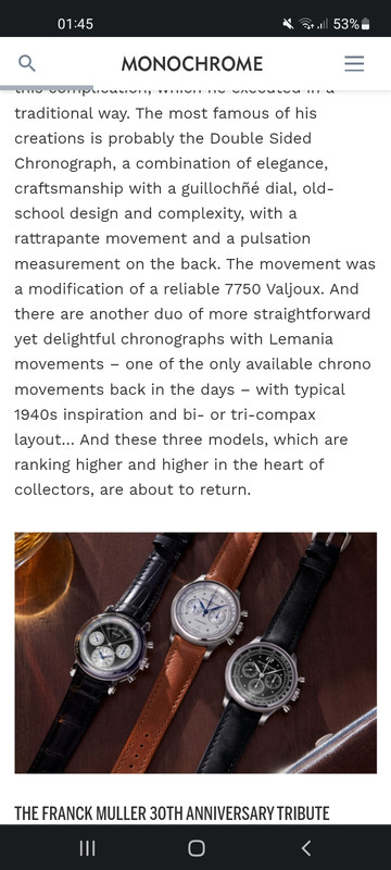 In 1993 Franck Muller further developed the minute repeater by inventing the carillion display. As a world first the Calibre 93 combines complications such as rattrapante chronograph, minute repeater, perpetual calendar, retrograde months equation, leap year cycle, 24-hour indication and temperature display.