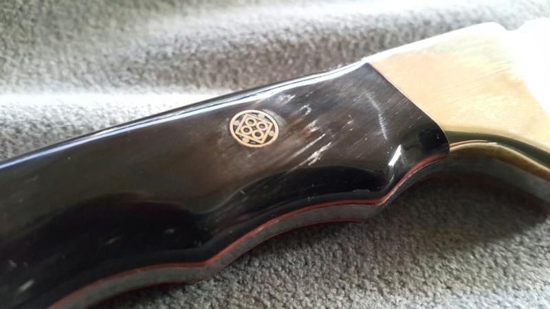 Η λαβή του είναι φτιαγμένη από ακατέργαστο μαύρο κέρατο Βούβαλου.