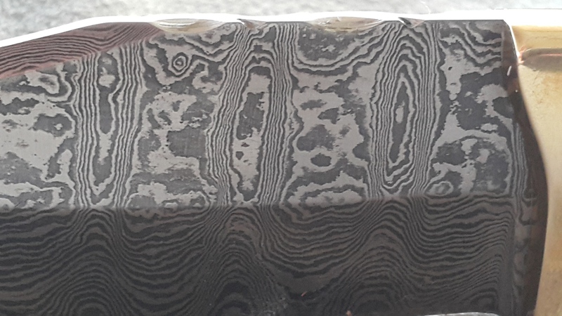Η κόψη της λεπίδας του είναι 13 εκατοστά και το υλικό της είναι Δαμασκηνό ατσάλι. Οι Δαμασκηνές λεπίδες κατασκευάζονται από την θερμή σφυρηλάτηση διαφορετικών ατσαλιών και γιαυτό βλέπετε αυτά τα νερά που θυμίζουν τα νερά ξύλου.
