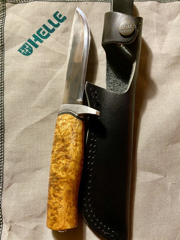 Νορβηγικό HELLE,ατσάλι ελασματοποιημενο  με διαφορετικές στρώσεις μετάλλου  και χαρακτηριστικη σκανδιναβική κόψη.
