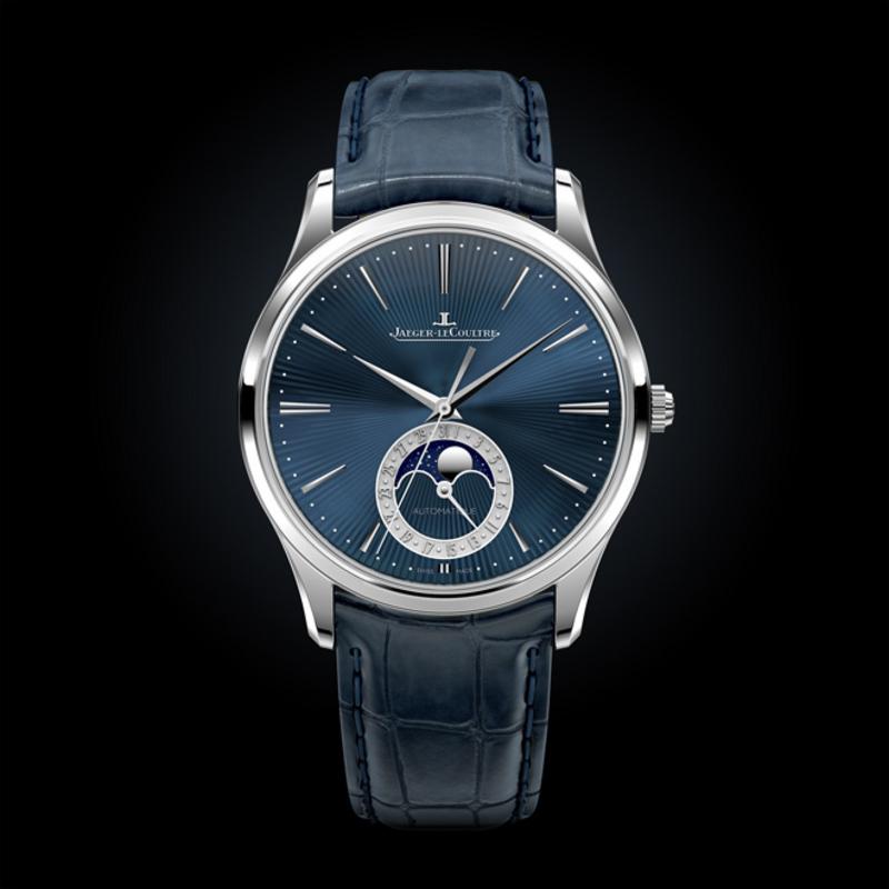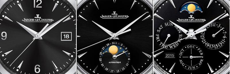 Jaeger Lecoultre Master Control ( 2015 ) Ultra Thin Perpetual Calendar 39 Steel Black ( 2016 ) and Moon ( 2015 ) Dials close up