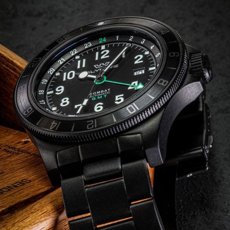 Combat Sub 46 GMT automatic. Stainless Steel case plated black with sandblasted finishing and sapphire glass. Ref. GL0332