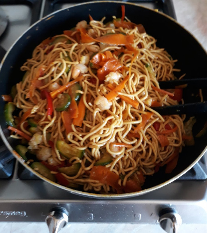 Είχα καιρό μα φτιάξω. Από τότε που χάλασε το wok. Όλο αναβαλώ να πάρω καινούριο με τη δικαιολογία θα πάρω ένα καλύτερο, αλλά σήμερα είπα θα φτιάξω, έστω και σε λάθος σκεύος. Βοηθάει το γκάζι τουλάχιστον. :)