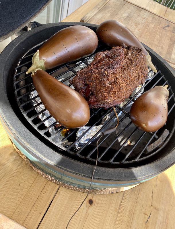 Πλησιάζουν έξη ώρες και η εσωτερική θερμοκρασία φτάνει τους 91C.Οι μελιτζάνες σε προετοιμασία για σπιτική καπνιστή μελιτζανοσαλάτα …😎
