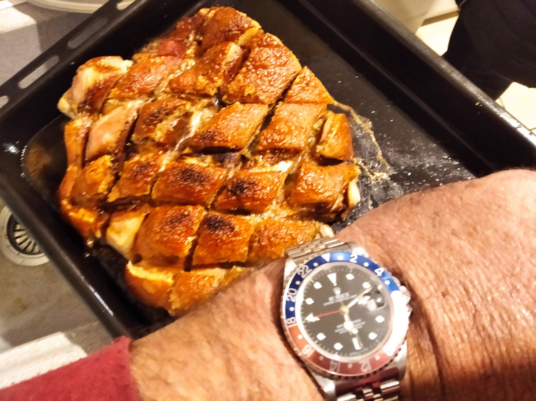6 ώρες στους 140, μέχρι τους 85 εσωτερικά, και τελείωμα στους 230, χοιρινή ωμοπλάτη, 6 κιλά.