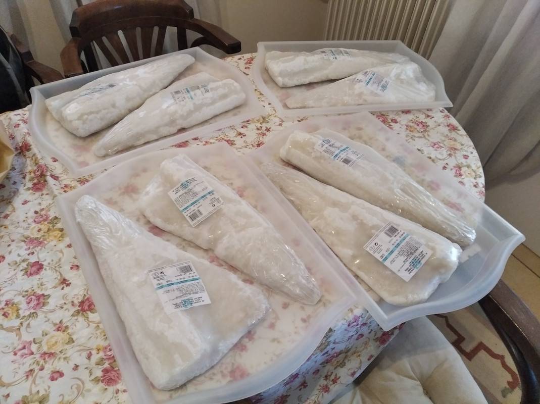 Εδώ, ξεπαγώνουν, τεμάχια 8, δηλαδή 8 κιλά. Για 5,5 άτομα.  :D :D :D :D
