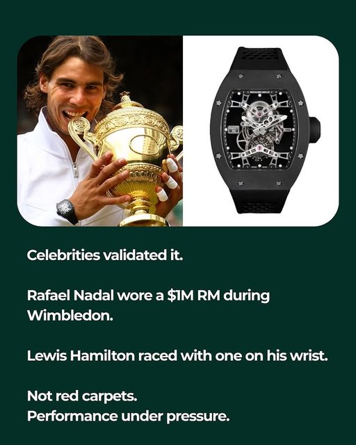 Richard Mille watches are advertised to be shock-resistant and accurate. They are light in weight, using materials including grade 5 titanium, LITAL, Carbon TPT, and graphene